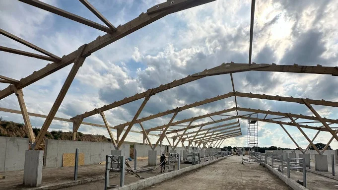 Die neue landwirtschaftliche Halle mit ihren großzügigen Maßen von ca. 27 Metern Breite und 74 Metern Länge bietet ausreichend Platz für die Tierhaltung.